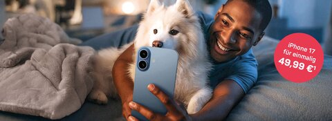 Im Tarif Einfach Mobil M: Apple iPhone 17 (256GB) mtl. 44,99 €, zzgl. einmalig 49,99 €. Mindestvertragslaufzeit 24 Monate. Tarifpreis nach 24 Monaten 24,99 €. Anschlusspreis einmalig 29,99 €. Versandkosten des Endgeräts 9,95 €. Internet-Flat mit 20 GB 5G-Datenvolumen bei max. 100 Mbit/s, danach Drosselung auf max. 64 Kbit/s, inkl. Telefon- und SMS-Flat für Standardgespräche und -SMS in nat. Mobilfunk- und Festnetze. Inklusivvolumen können nicht in den Folgemonat übernommen werden. Für Neuverträge oder aktive Vertragsverlängerung. Gültig für Privatkunden bis 31.01.2026 und solange der Vorrat reicht.